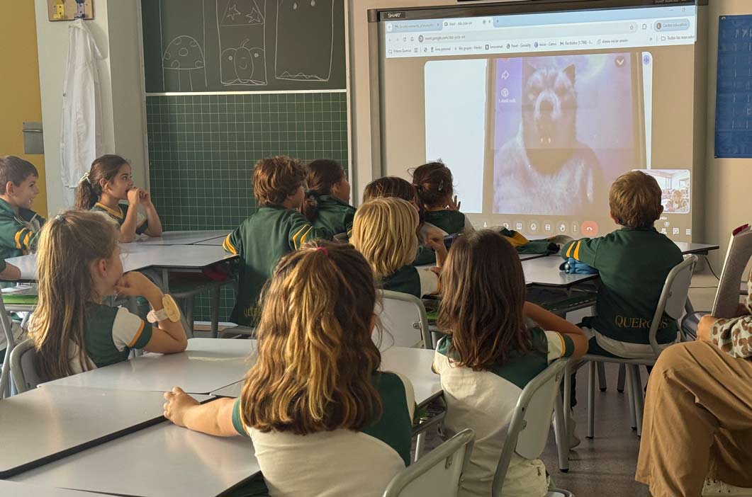 Auuugusto el hombre lobo, no es tan fiero como parece. Protagonista de muchas historias, este animalito llegó, a través de una videollamada, a la clase del alumnado más pequeño de Primaria y consiguió esclarecer muchas dudas que tenían acerca de lo misteriosa que, en ocasiones, es su figura.