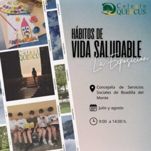 Durante los meses de julio y agosto, desde las 9.00 hasta las 14:00 horas, la primera planta del edificio de la concejalía de Servicios Sociales de Boadilla del Monte (Plaza de la Villa s/n.), acoge la exposición “Hábitos de Vida Saludable”. Un maravilloso repaso fotográfico por los diferentes pilares que forman este tema y que ha sido puesta en marcha por nuestro alumnado de Secundaria.