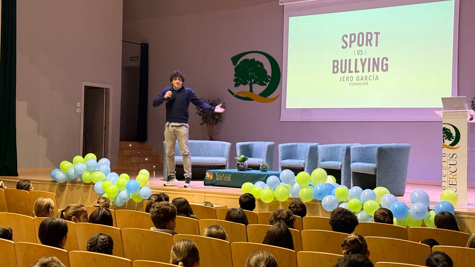Jero García se ha convertido en nuestro nuevo padrino del Programa Tutoría Entre Iguales (TEI). En un acto muy dinámico, esta figura pública del deporte español se ha acercado a nuestro alumnado de Primaria y Secundaria para hablarles, a grandes rasgos, de la importancia del respeto y de la superación.