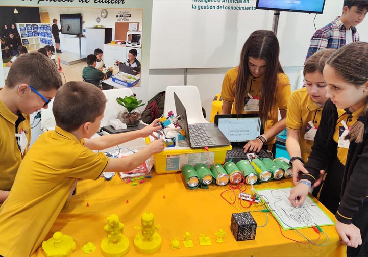 En esta edición, nuestro colegio ha vuelto a estar presente dentro del catálogo de actividades programadas para tal cita con la educación. De esta manera, en el espacio “SIMO makers” se llevó a cabo una presentación de las actividades realizadas por los alumnos de 6º de Primaria dentro de la asignatura de Tecnología y Robótica. De esta manera, se han expuesto sendos trabajos de diseño e impresión en 3D, robótica con LEGO y SPHERO, realidad aumentada, pensamiento computacional, herramientas digitales…